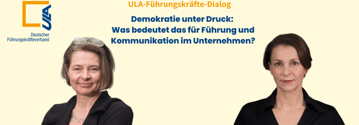 Mit unserem neuen Format ULA Führungskräfte-Dialog intensivieren wir den Austausch zwischen den Führungskräften der Wirtschaft und den politischen Entscheidungsträgern. Im Mittelpunkt stehen stets aktuelle Themen und Fragen zum Wandel in der Arbeitswelt sowie guter Führung und Management. Teilnehmer der digitalen Veranstaltungsreihe sind die Mitglieder der Vorstände und Geschäftsführungen der 17 ULA-Mitgliedsverbände sowie ausgewählte Gäste aus der Politik, Unternehmen und Verbänden.