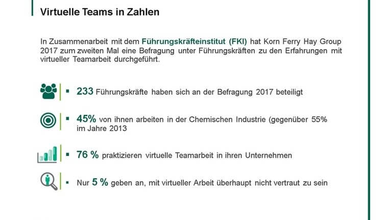 Als Korn Ferry Hay Group in Zusammenarbeit mit dem Führungskräfte Institut (FKI) in 2013 Führungskräfte befragte, war man davon ausgegangen, dass virtuelle Arbeitsformen zwangsläufig aus zu beobachtenden „Megatrends“ entstehen und zunehmen werden. Globale Strategien für lokale Märkte, demografischer Wandel, Digitalisierung und damit einhergehend familienfreundliche Arbeitsplatzmodelle sowie konvergierende Technologien wurden als Hauptgründe angenommen.