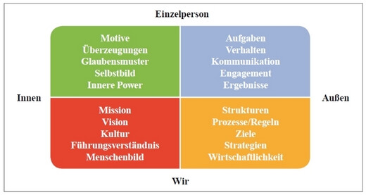 - Bewusstsein und Sinn auf allen Ebenen schaffen: Jeder Mensch sucht nach Sinn und findet ihn in dem zielgerichteten Einsatz seiner inneren Power für einen wertvollen Beitrag für andere. Auf der Projekt- und Unternehmensebene heißt das: Reichern Sie wirtschaftliche Ziele an indem Sie kraftvolle Visionen mit einem werthaltigen Beitrag für Kunden, Branche, Region und Gesellschaft gemeinsam mit den Beteiligten entwickeln.