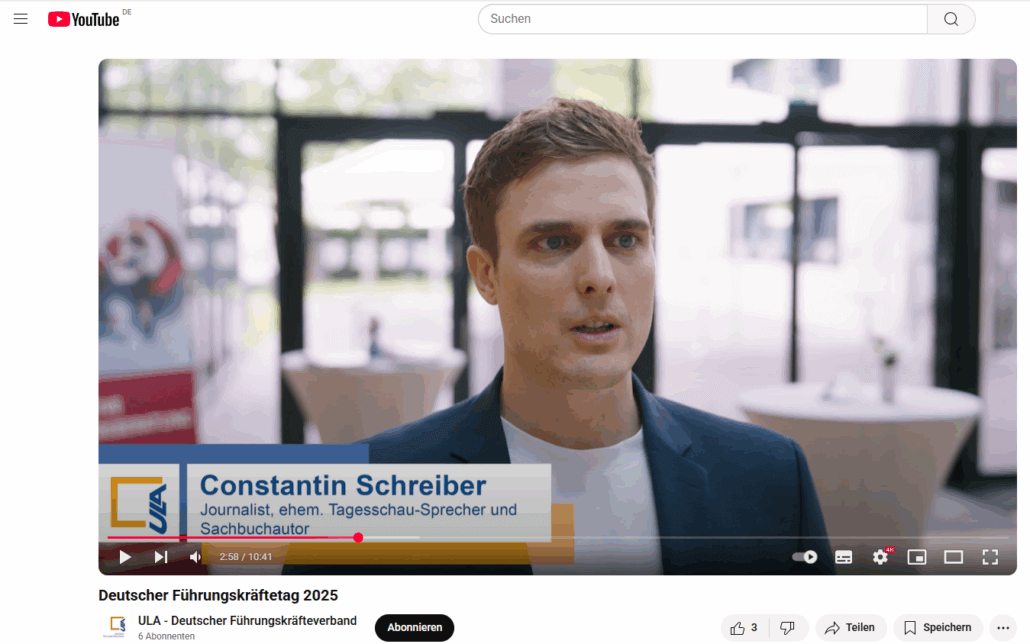 Rückschau auf den Deutschen Führungskräftetag 2025 der ULA mit vielen spannenden und hochrangigen Rednerinnen und Rednern, Gästen und Führungskräften. Unter dem Leitmotto „Zukunft gestalten – Weichen für morgen stellen“ standen standen die Themen Prioritäten für Strukturreformen aus Sicht der Führungskräfte, Führung in polarisierenden Zeiten, und die Mitbestimmung der Leitenden Angestellten in Sprecherausschüssen im Mittelpunkt.